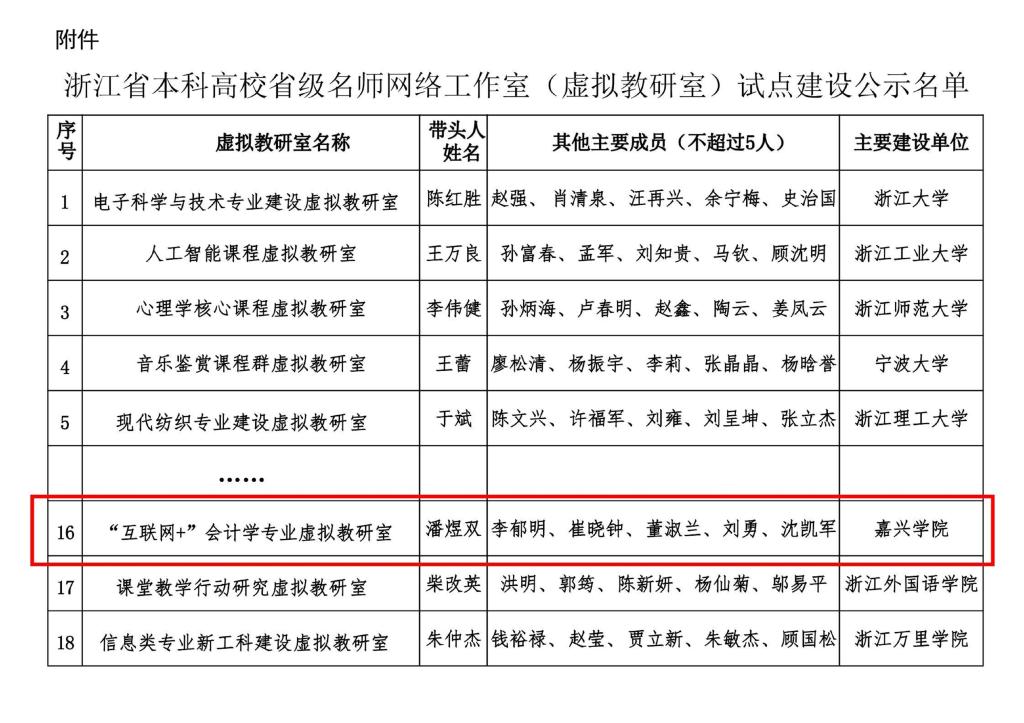 近日,浙江省教育厅公布了浙江省本科高校省级名师网络工作室(虚拟教研室)试点建设名单,小黄书 “互联网+”会计学专业虚拟教研室入选首批省级虚拟教研室试点建设点。